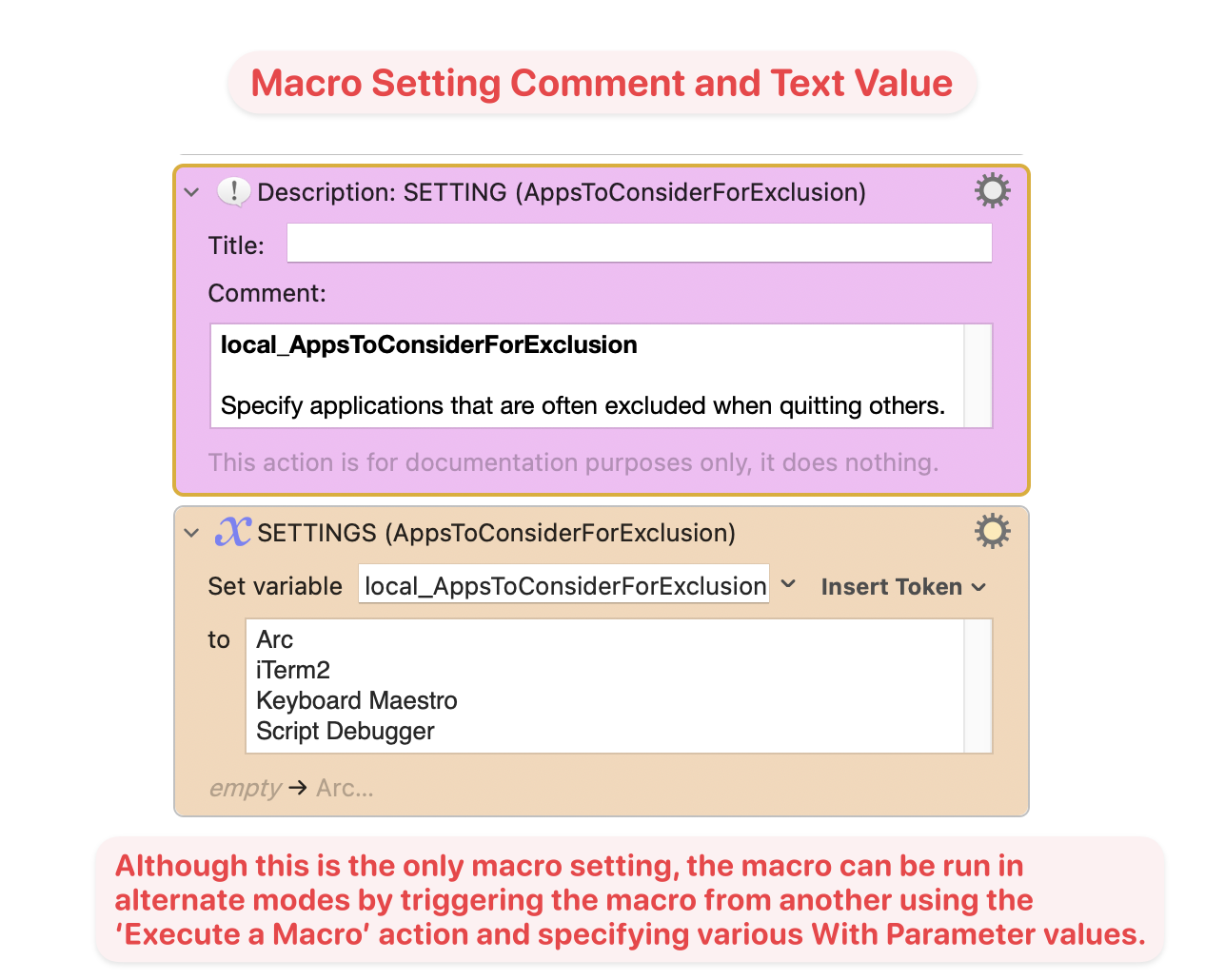 The application name required is not always obvious, for example with iTerm.app, iTerm2 is required. Thus this macro includes an alternate mode that can be used to assist when configuring this setting: