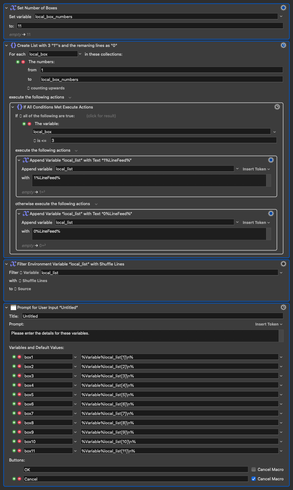 I’m building a macro where I need Keyboard Maestro to check 3 random boxes out of 11 every time it runs.