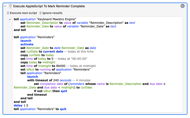 So we have code that will execute, but only sets the completion on reminders whose due date was on or after Reminder_Date and before 01:46:40 today. If the explanation had read