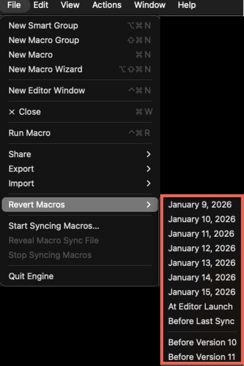 I needed to back to an earlier version of a macro group lets say last Tuesday at 11:15 am