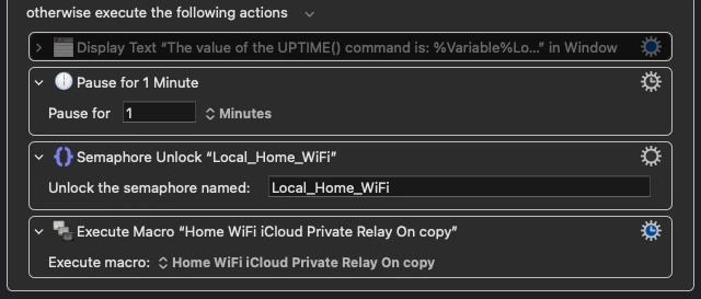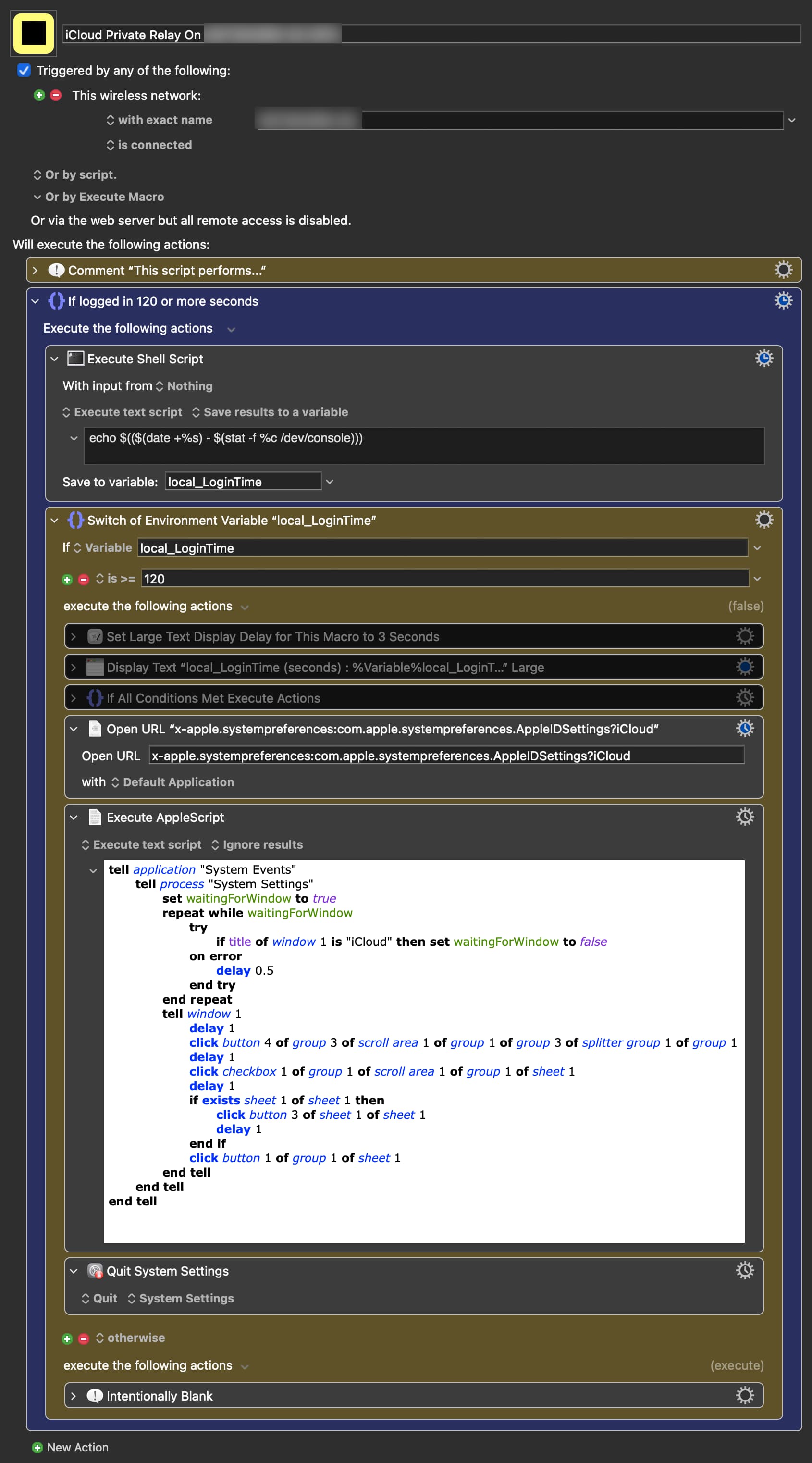 I still am using the Wireless Network Trigger when the mac connects to the WiFi network that does not play nicely with iCloud Private Relay. At least that part of my original macro survived.