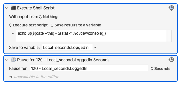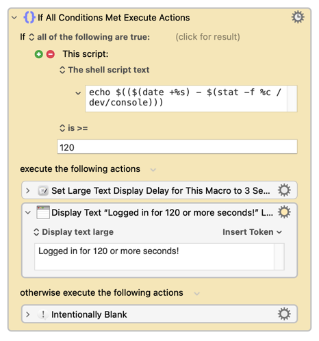The command I am using now to help determine if the Mac has been up for at least 120 seconds is: