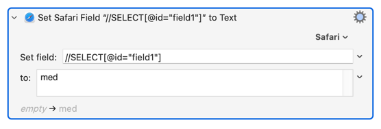 For "normal" apps (or web apps where JS won't work) I'd try keystrokes -- can you type to select a list item? Keystroke: M would be enough in this case, or you could Insert text by typing: med. In either case you may need a short Pause before the Keystroke: Return, particularly in slow-to-respond cases like Electron apps.