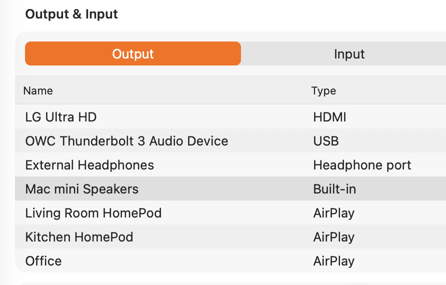 @KBM give this a try. You can add more AirPlay devices in the top line, but it cycles through them. So if you're switching between more than one non-AirPlay output, you could instead have only the one Office HomePod (or whichever you use regularly), and use SwitchAudioSource for the others.