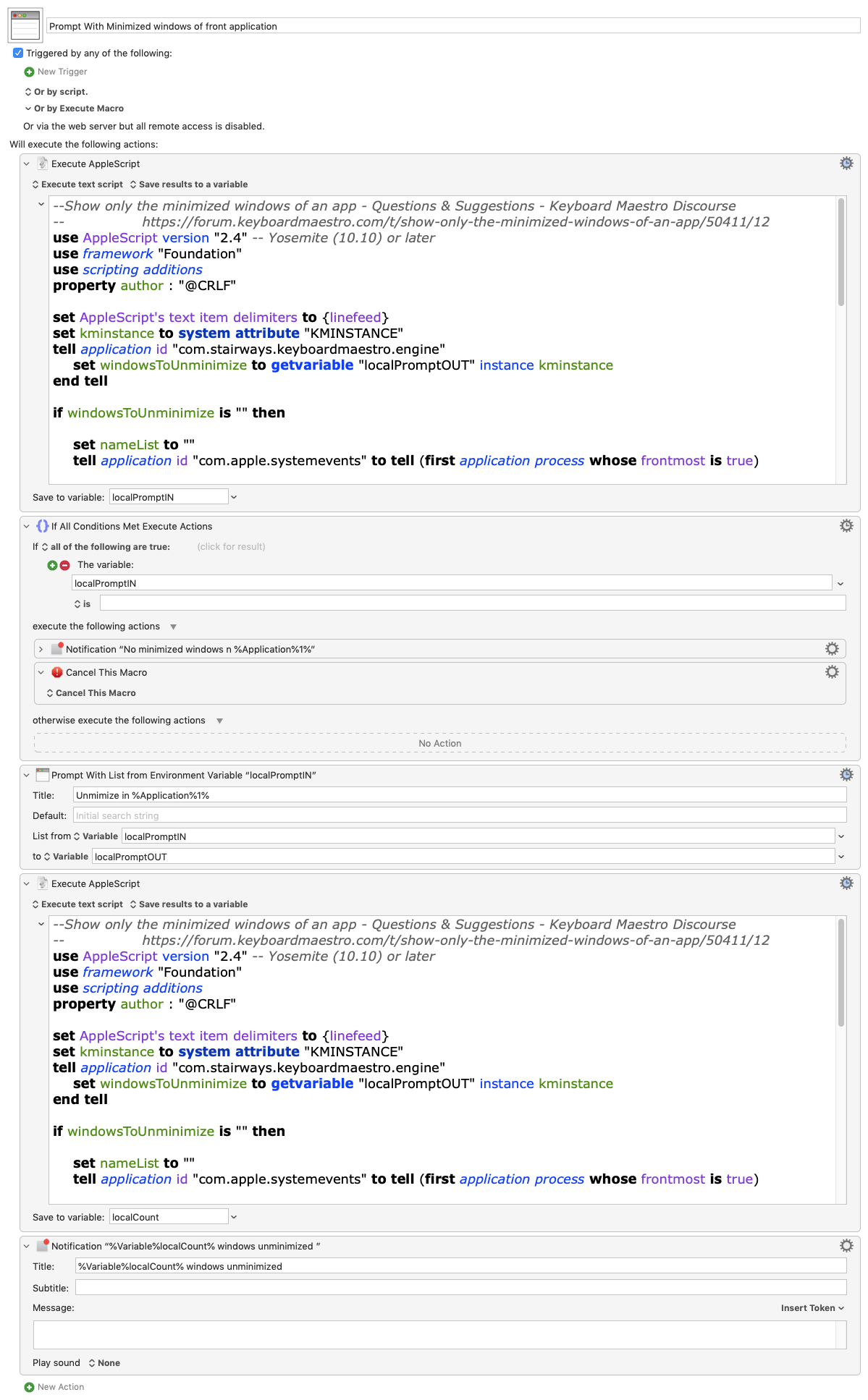 Minimizing windows is not particularly well done natively in macOS. However, with a macro like this, you can compensate for everything Apple has neglected.