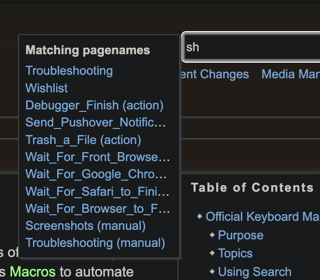 The pages are still in the wiki, but it seems some of them aren't suggested in the popup anymore? Initially I thought that the search was just being really slow and hanging until I searched for some other pages. I refreshed, cleared cookies and cache, and restarted the browser.