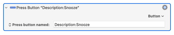 BTW, KM’s Press Button (“Snooze Options”) does work just like the AppleScript, but there’s no asynchronous option, and so the delay is still there using that action.