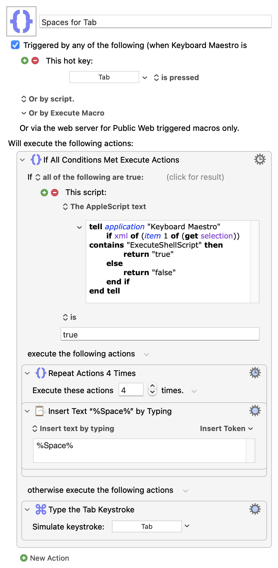 ...and will insert 4 spaces rather than a Tab when you are editing an "Execute a Shell Script" Action.