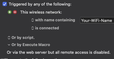 My trigger is when my mac connects to my employers wireless network. If I do not, I will get errors throughout the day.