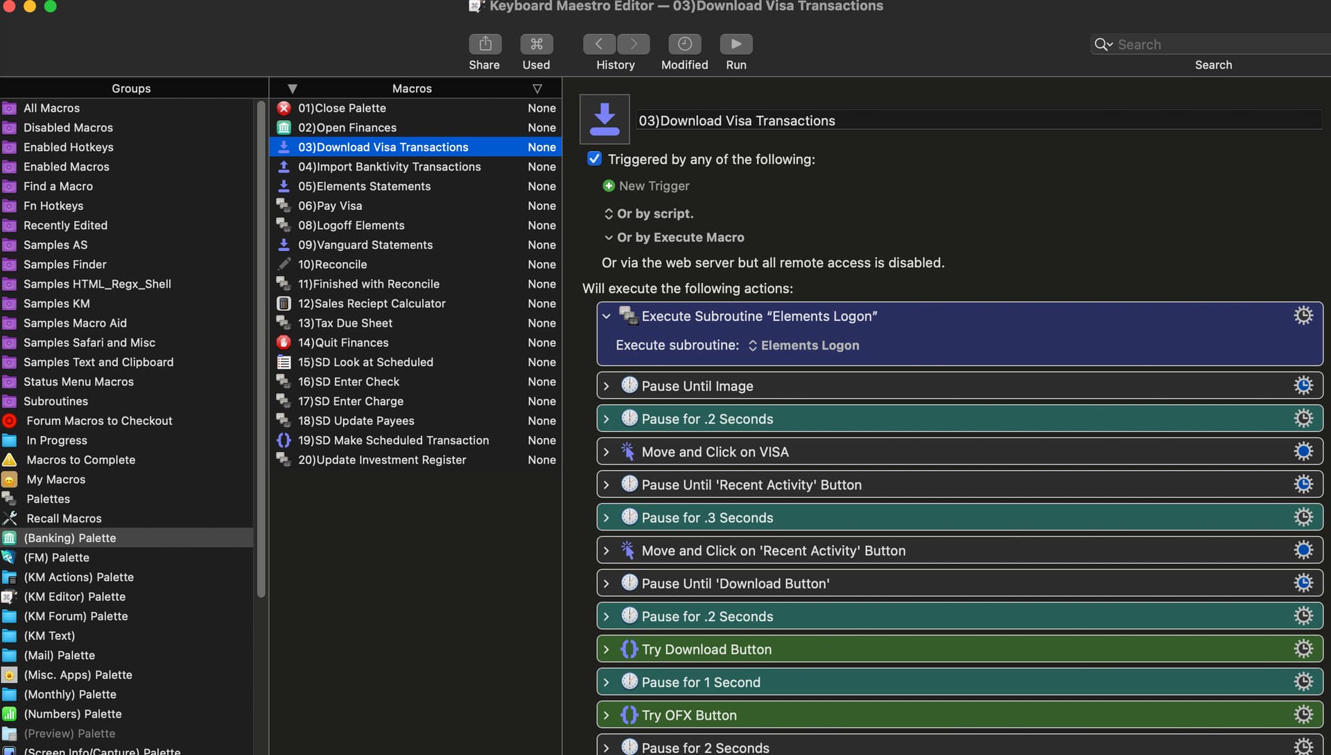 When I trigger it, the palette appears (see second pic) and nicely highlights the first letter of each macro name, so I can just press a key to run one.