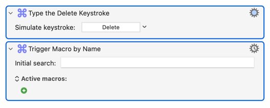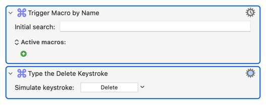 Hi Joel, you could use the âExecute macroâ action to trigger your ânormalâ âTrigger by nameâ macro ASYNCHRONOUSLY and THEN type the delete/cut key to remove the previous search string.