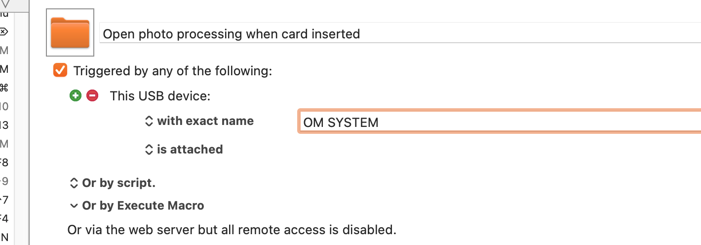 And if I leave the name field blank and the cursor there “if your text insertion point is in the name field of this trigger and you connect (or turn on) the device, Keyboard Maestro will fill the name in for you” doesn’t do anything. The quote is from https://wiki.keyboardmaestro.com/trigger/USB_Device.
