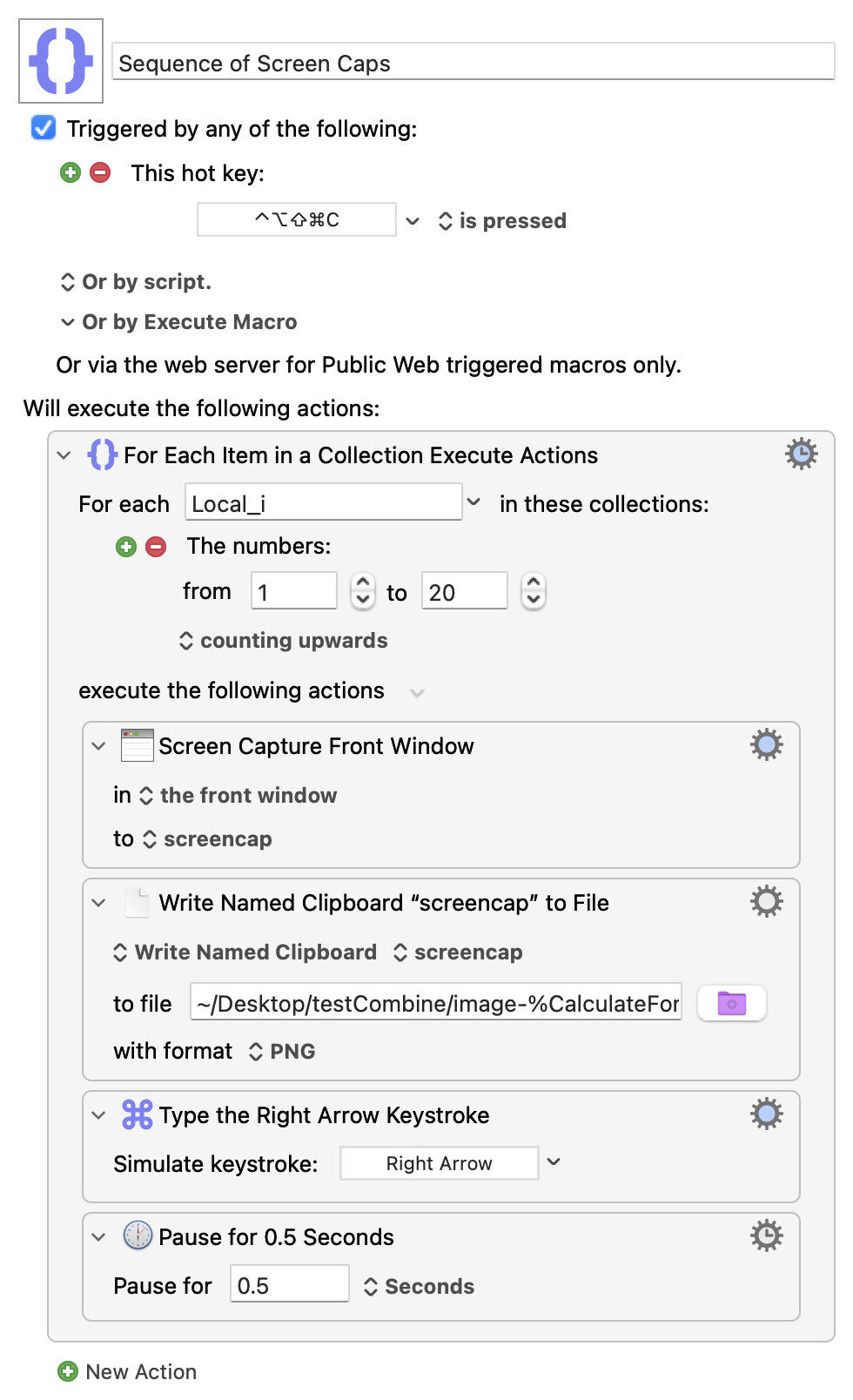 As I noted I am new to Macros and my “repeat action” seemed logical but was clearly not the right starting point. I didn’t recognize that the For Each Item in a Collection - would do what it does in terms of taking repeat Pictures.