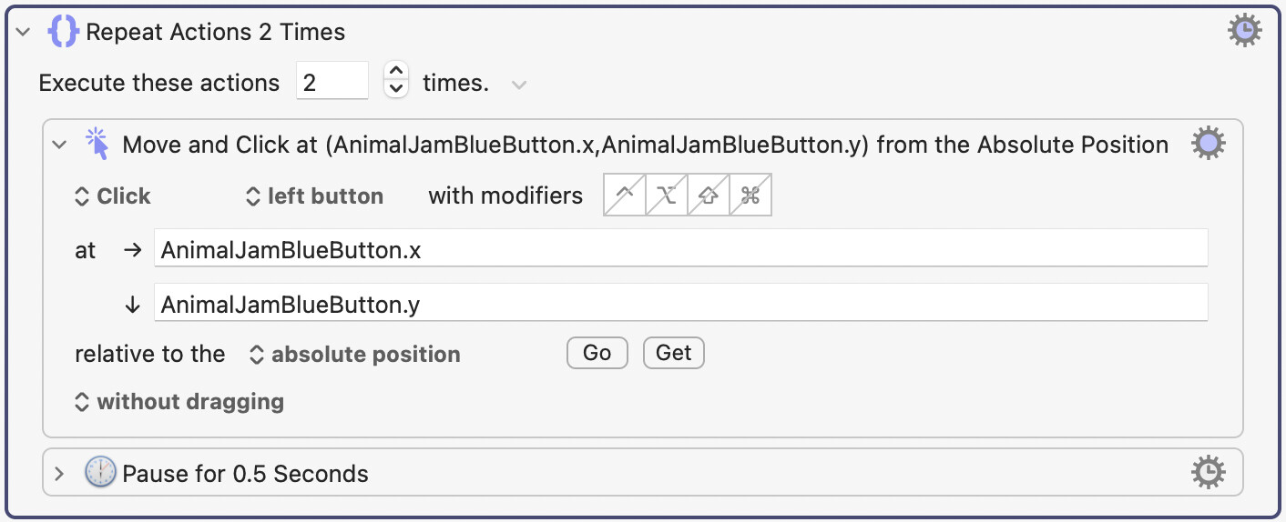 It is called animal jam classic (not to be confused with animal jam play wild)! I know its possible to do this, but I usually see people using TinyTask on windows and that didn’t work for me so I’ve been looking for an alternative for Mac. I don’t think you’re misunderstanding my problem, I just don’t know how to make a sequence like that. I’m sure it is simple I’m just a bit lost.