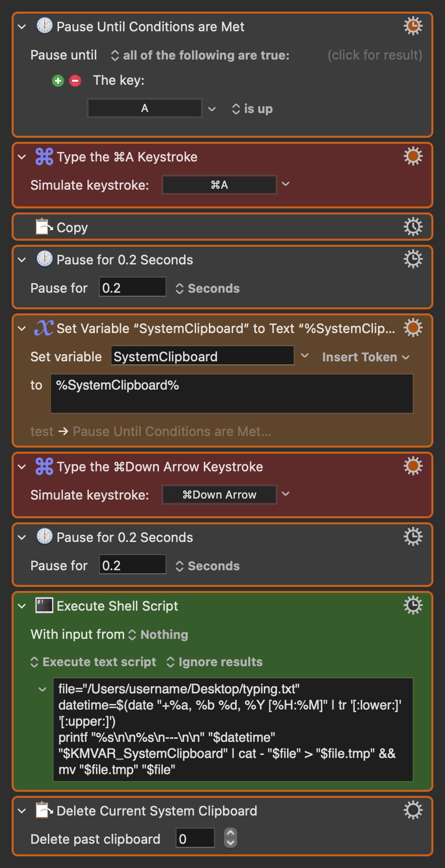 In my macro, I copy text and immediately try to use it via $KMVAR_SystemClipboard in an Execute Shell Script action. Even with a 5-second pause after Copy, the variable evaluates wrong in the shell script. However, if I add a "Set Variable to Clipboard" action immediately after Copy, then reference that variable in the shell script, it works perfectly.