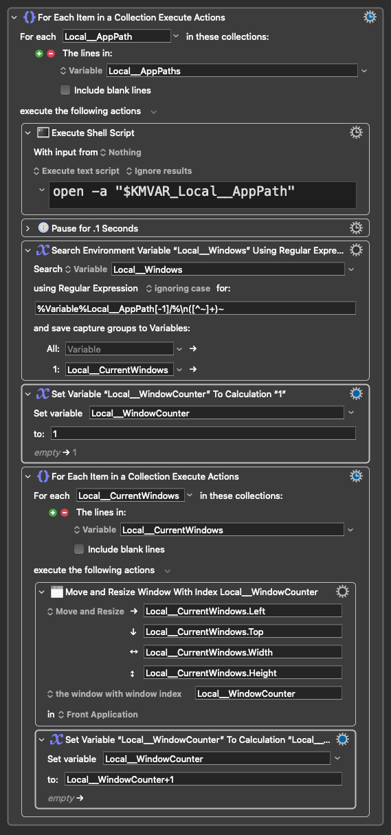 ) to iterate through later to generate "Manipulate Window" Actions on the fly, dynamically targeting by both app path and window title to set frames.